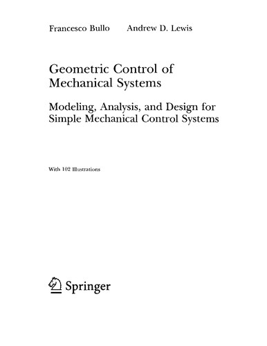 Geometric control of mechanical systems : modeling, analysis, and design for simple mechanical control systems / Francesco Bullo, Andrew D. Lewis.