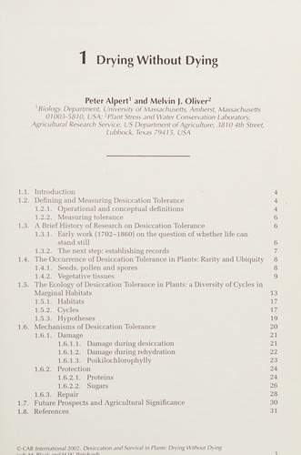 Desiccation and survival in plants : drying without dying / Edited by M. Black and H. W. Pritchard.